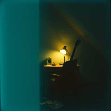 [Acoustic Indie Folk], [Lo-fi Bedroom Recording], [Whispered Male Vocals], [Intimate Harmonies], [Sparse Arrangement], [Acoustic Guitar Fingerpicking], [Melancholic Tone][very soft vocals] fingerstyle, finger picking, southern hymn, lulling, static cheap recording, cozy, [clean electric guitar, band chorus]