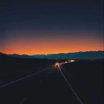 Cinematic indie folk rock road-song with subtle Synthwave hues, Features acoustic strumming, ambient electric layers, analog synth undercurrents, and a slow-driving rhythm evocative of endless highways at dusk, Vocals are introspective, breathy, and emotionally grounded — storytelling from a traveler’s perspective, blending melancholy and quiet hope, ‑Female Vocal