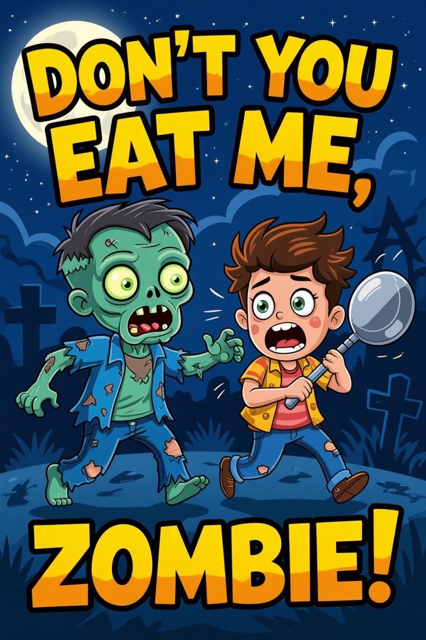 Bright synth-pop intro with funky slap bass and electric piano chords, layered over an upbeat 110-120 BPM groove, Playful male vocal carries the verse with tongue-in-cheek delivery, alternating with eerie synth pads, Horror sound effects—growls, zombie munching—pepper pre-choruses for comic tension, Gang vocals drive the infectious chorus with stacked harmonies, underpinned by driving drums and thick synth layers, Each bridge adds quirky synth leads and adds more horror FX, blending eerie tones into a playful, catchy pop/rock framework