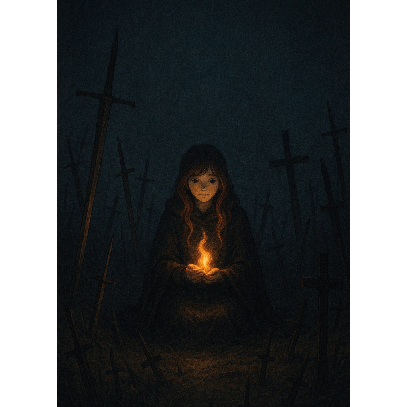 Epic art-pop ballad that begins intimate and ascends into sacred grandeur, Wurlitzer electric piano opens alone, tremolo and tape-worn, playing ambiguous Lydian harmonies, A low drone hums beneath; distant bells mark time, Gradually a full choir enters—male and female voices in layered triads and open fifths—chantlike at first, then blooming into gospel-scale crescendos, Strings tremble and brass surges like divine thunder, Percussion builds from soft brushed toms to slow, heavy hits that feel ritualistic, almost taiko-like, The production glows with analog warmth, shimmering reverb, and expanding stereo space, Melody emotional and soaring, Japanese lyrics sung with conviction and tenderness, Final refrain modulates upward again and again, ending unresolved in luminous silence, Tone: Dark Souls × Elden Ring × J-pop epiphany—tragic, radiant, eternal