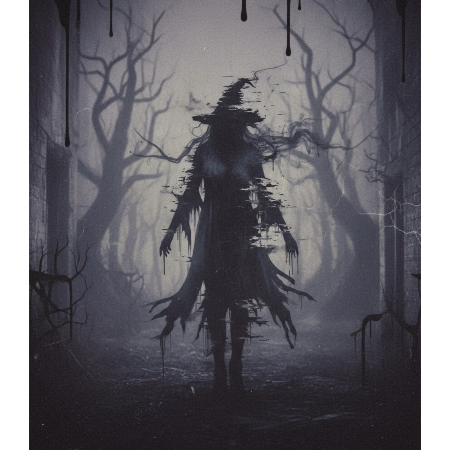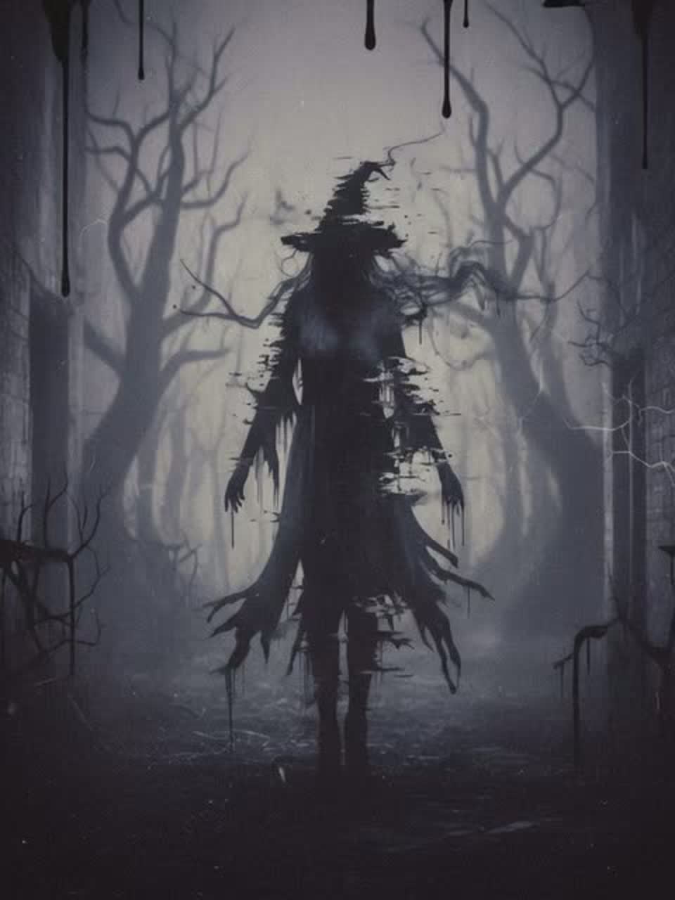 Witch house with a haunted, occult atmosphere, Slow, heavy bass and distorted synths, Ethereal pads drenched in shimmering reverb, Female vocals are ghostly and ethereal, Deep, ritualistic beats, echoing percussion, and a dense, foggy ambience complete the spectral soundscape, ‑Metal, ‑Rock, ‑Pop, ‑R&B, ‑Hard Rock