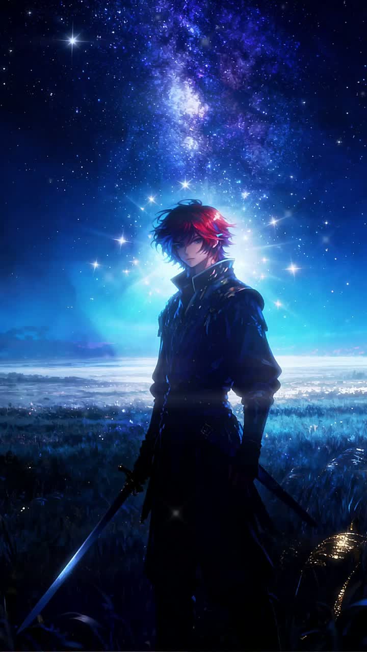 Epic cinematic orchestral soundtrack, inspired by Peter Roe – Legend of Valor, Tempo: 72 BPM, Key: D minor, Mood: heroic, emotional, fantasy, bittersweet, introspective, melancholic, mystical night sky, solitude, Atmosphere: vast open field, stars, amplitude, silence between phrases, space and dynamics, shimmering starlight FX, ethereal reverb, glassy bells, Chord progressions: