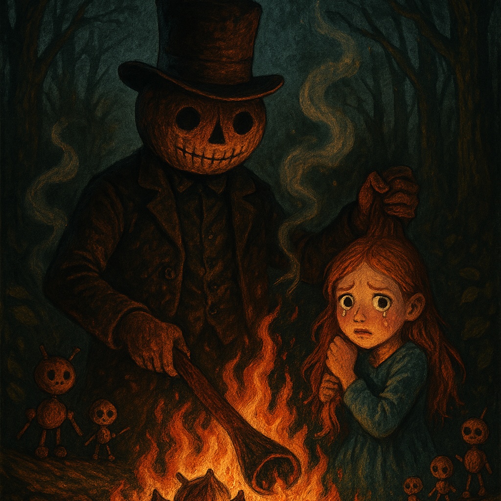 Dark horror folk with baritone vocals, detuned acoustic guitar, eerie choirs, found percussion, and ambient textures, Psychedelic, Instrumental hooks and riffs