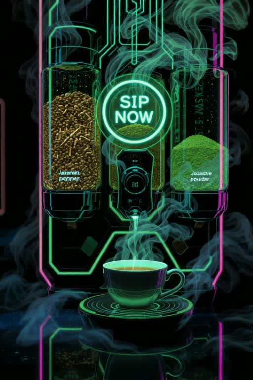 [Chorus] “Swipe to steep, tap to choose; jasmine bloom, matcha fuse; Lapsang smoke, Darjeeling hues, ”