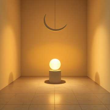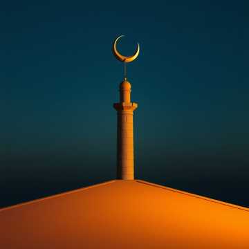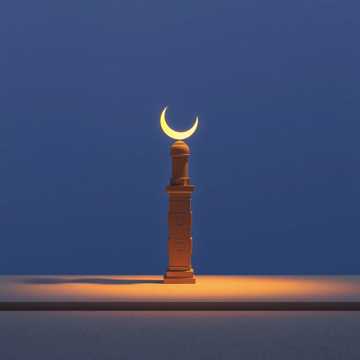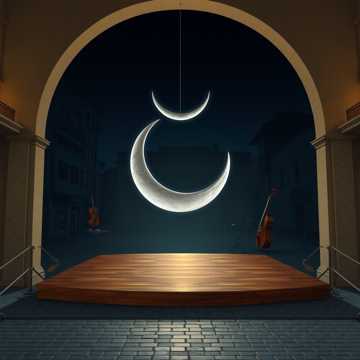 Pleasant, upbeat orchestral Ramadan piece (90–96 BPM), Solo oud opens with a confident, lyrical melody; melodies are memorable and repeatable, Ney and violins echo the theme in uplifting call-and-response, Rich strings create a flowing harmonic bed, while daf and light frame drum keep a buoyant rhythm, Subtle choir pads (wordless) add lift without drama, Atmosphere feels hopeful and expansive, like a bright crescent rising above a minaret, Balanced mix, warm reverbs, dynamic swells that feel inspiring yet controlled, End with a glowing orchestral cadence