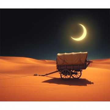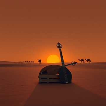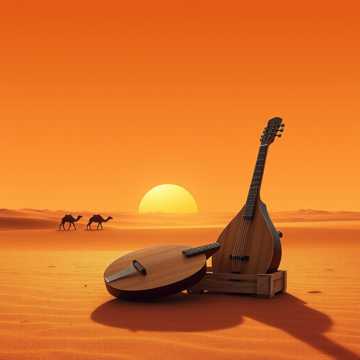 Cheerful, uplifting orchestral Ramadan piece (92–98 BPM), Oud opens with a graceful melodic phrase; melodies are memorable and repeatable with light embellishments, Ney and violins respond warmly, Strings build layered harmonies that feel expansive but friendly, Daf maintains a steady celebratory rhythm, Santur adds shimmering highlights, Mood is festive yet refined—desert caravans resting under a bright crescent moon, Organic instruments, subtle crescendos, joyful orchestral resolution