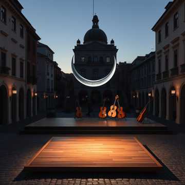 Pleasant, uplifting Ramadan orchestral piece (90–98 BPM), Oud introduces a flowing, lyrical theme; melodies are memorable and repeatable, Ney carries soaring variations, Full string ensemble builds harmonic richness with elegant crescendos, Light daf rhythm maintains buoyant movement, Subtle choir textures enhance brightness without heaviness, Mood is celebratory and luminous—silver moonlight over a vibrant city, Warm acoustic tone, cinematic depth, joyful closing cadence