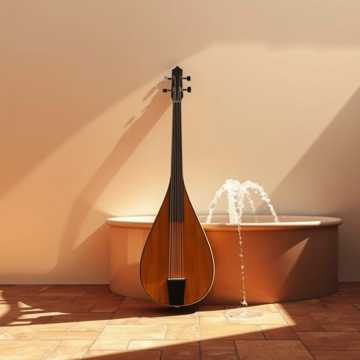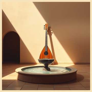 Light, buoyant fusion instrumental (90–96 BPM), Oud presents a graceful melodic motif; melodies are memorable and repeatable, Ney responds playfully, Pizzicato strings mimic gentle water movement before expanding into warm legato harmonies, Daf adds subtle rhythmic texture, Santur creates delicate sparkle, Mood is peaceful yet cheerful, capturing lively Ramadan nights in a courtyard, Airy reverb, balanced orchestration, uplifting but soft conclusion