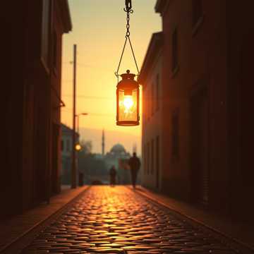 Upbeat Persian–Arabian fusion orchestral instrumental, Bright tempo (92–100 BPM) with a joyful yet elegant feel, Oud and setar introduce a clear, uplifting main theme; melodies are memorable and repeatable with light ornamentation, Ney answers in playful phrases, Full string ensemble provides warm, sweeping harmonies and rhythmic accents, Daf and riq add a gentle, festive pulse—lively but not overpowering, Santur sparkles subtly in transitions, Mood is celebratory and radiant, like lanterns glowing across Shiraz at Ramadan nightfall, Organic acoustic tone, cinematic warmth, graceful crescendos, joyful but refined ending