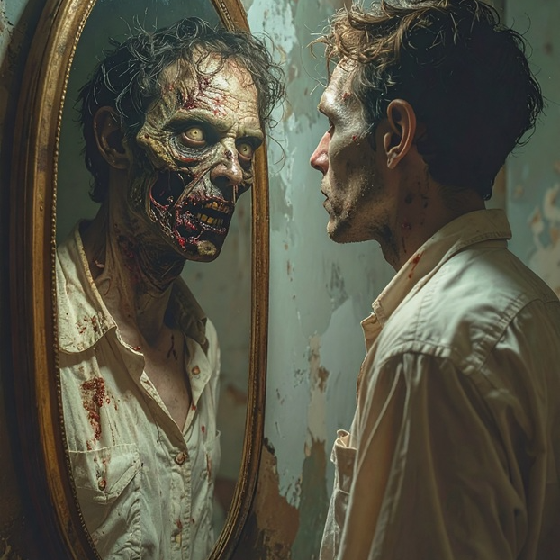 Progressive art-metal with polyrhythmic drumming, hypnotic bass grooves, and heavy drop-tuned guitars, Layered with intricate classical acoustic guitar and violin passages featuring fingerstyle arpeggios and complex counterpoint, The arrangement opens with a renaissance violin riff, then moves between meditative, spacious sections and crushing, distorted climaxes, Vocals shift between cryptic spoken-word incantations, tortured melodic lines, and rasped intensity, The atmosphere is existential, ritualistic, and unsettling—an inner struggle between presence and absence, consciousness and emptiness