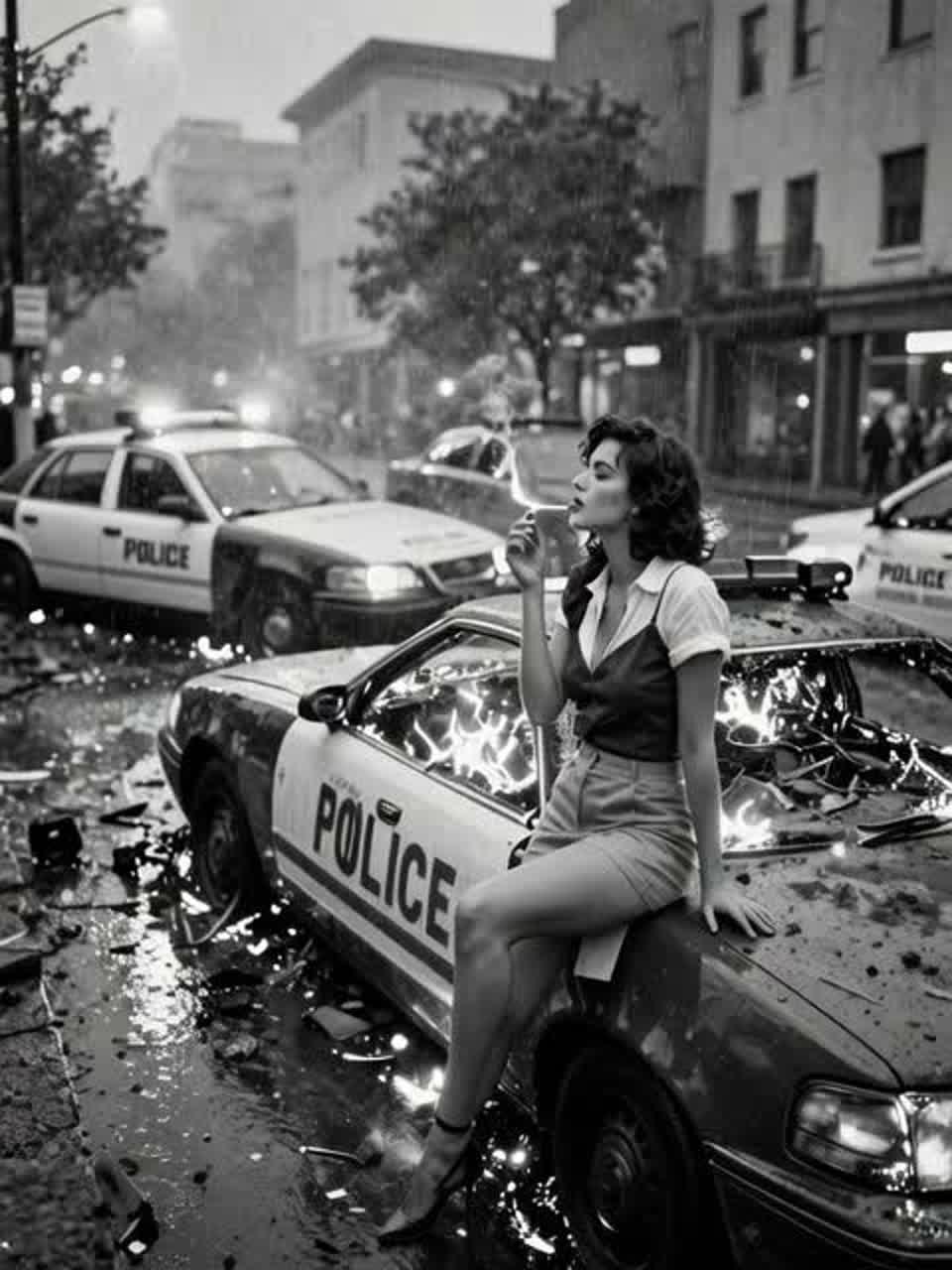 [Instrumentation: Reverbed nylon acoustic lead, tremolo-drenched electric swells, upright bass pulse, brushed-to-crashing drums, wailing harmonica, Mellotron choir undertow, subtle police-radio static and rain FX layered deep]