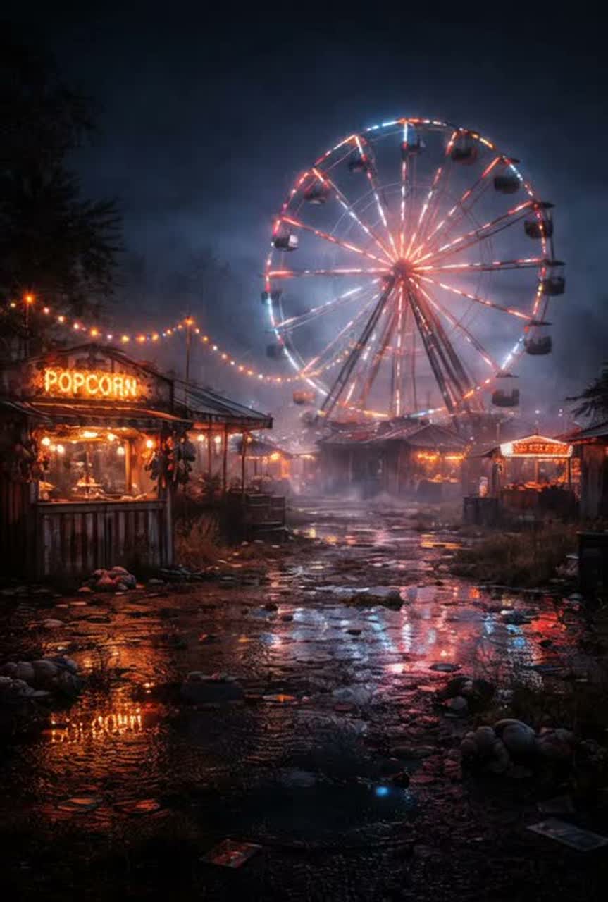 [Style: Subverts innocent fairground tropes into tools of psychological torment via detuned imperfections, sudden genre veers from nostalgic organ swells to glitchy chaos, and authentic cracked authenticity that feels alive and volatile]