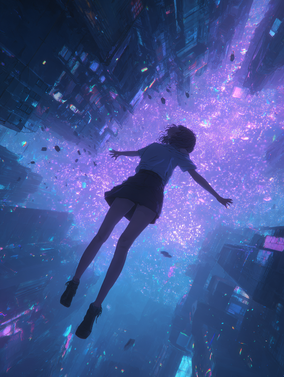 Sweet but rebellious, sprinkled with random onomatopoeia and sly humor—like sticking out your tongue while confessing a secret, Short fragmented Japanese phrases with unexpected English words for spice, Mix / Atmosphere: