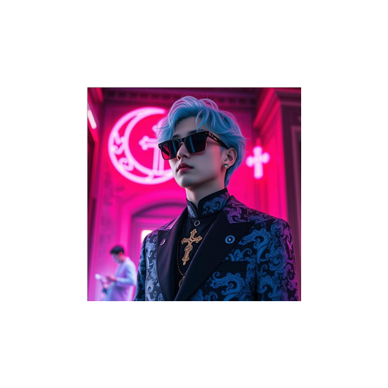 Echoing synths and glitched vocal chops swirl over a trap-infused hyperpop beat, tethered by deep melodic bass, Chamber pop strings and woodwinds add bittersweet swells between verses, Acidic synth leads twist through sweeping breakdowns, conjuring psychedelic melancholy amidst kaleidoscopic intricacy
