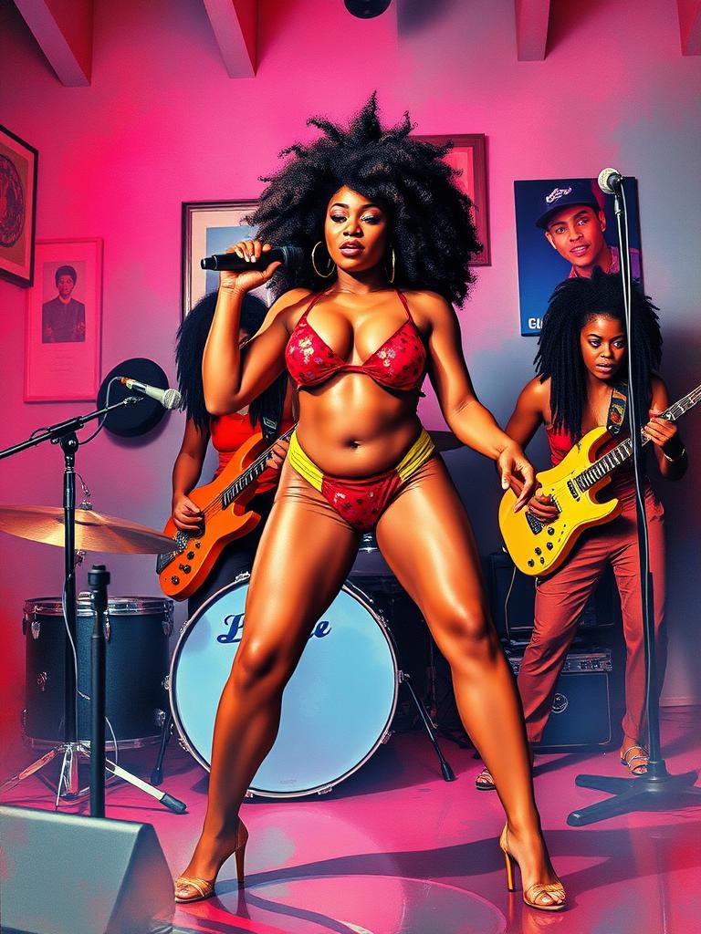 Gritty 1970s afrobeat wah wah funk high-energy vintage reggae soul track driven by fierce feminine energy and unapologetic swagger, Up-tempo groove with a tight, punchy rhythm section: live drums with heavy snare accents, walking bass line, sharp staccato guitar riffs, and a bright, brassy horn section that answers and elevates the lead, Lead vocals are raspy, powerful, and commanding—half shout, half sultry melody—with playful ad-libs, call-and-response backing sisters, and improvised runs, Recording style feels analog and live in the room, slightly overdriven with warm tape saturation and minimal polish, Lyrics center on bold female desire, magnetic confidence, independence, and owning the dance floor, Overall mood is sweaty, dominant, joyful, and explosive, blending gospel fire with Southern rhythm-and-blues grit