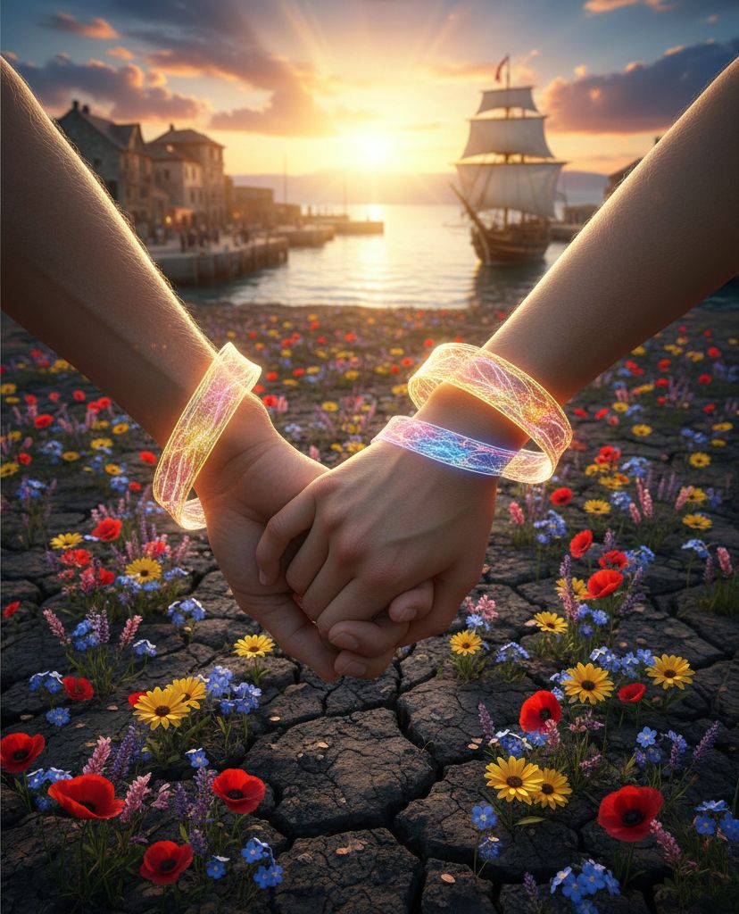 Dreamy Acoustic Rock with Spanish Acoustic Rock flourish opens with intricate fingerstyle guitar and gentle percussion, The verses feature complex, warm melodies over lush acoustics and subtle synth pads, The chorus explodes with energetic male and female choral harmonies, layered over driving guitars and dynamic rhythms, keeping the atmosphere rich and passionate throughout
