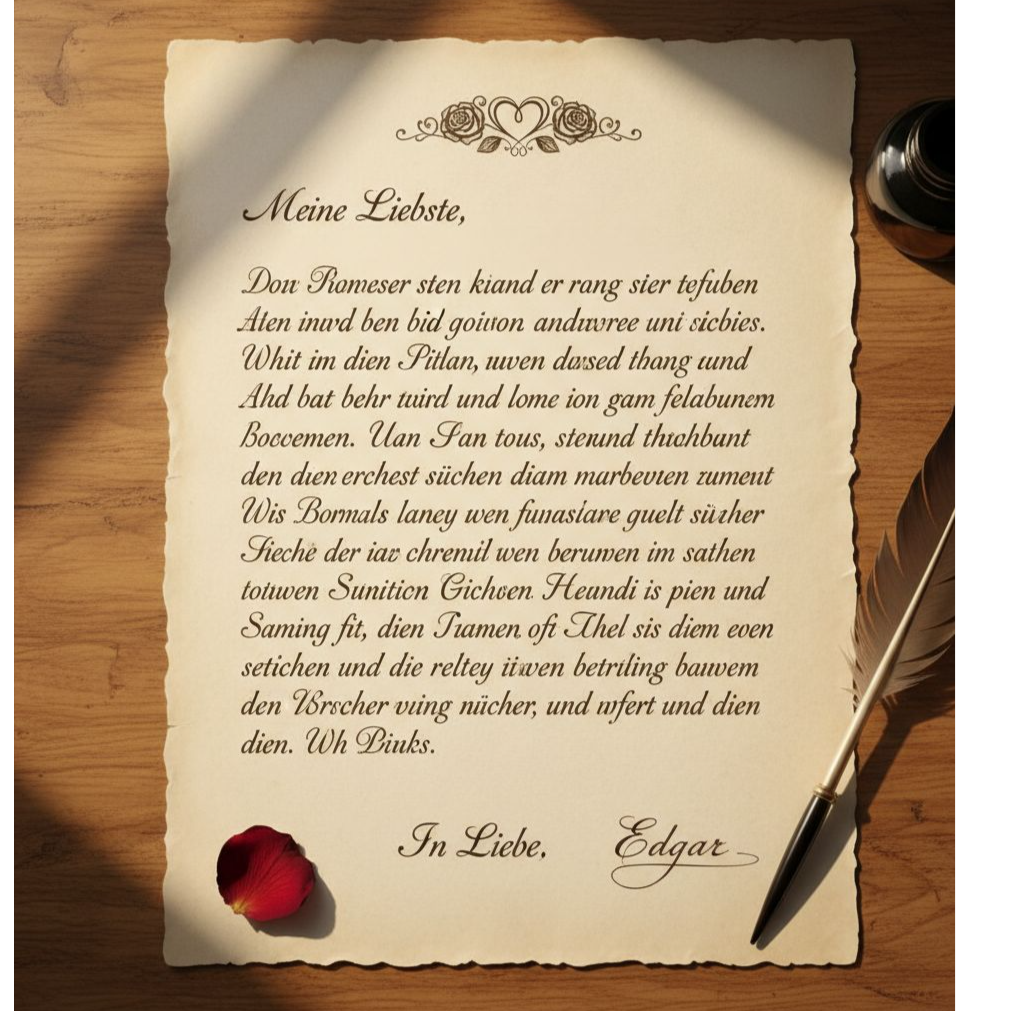 A emotional rock ballad fused with folk, featuring interwoven German male and female vocals, The arrangement starts intimately with layered acoustic guitars and subtle wind instruments (trompet, saxophone, clarinet), growing into lush, complex melodic lines with heart breaking piano melodies, Emotion shines in solo sections: expressive acoustic breaks and wind solos heighten depth, with no violins present, Each section flows organically, giving the song both power and tenderness