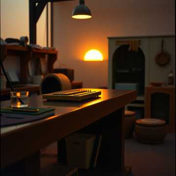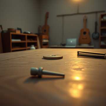30-second instrumental, Quiet futuristic workshop ambiance: muted techno-ambient with organic desert tone, Sub-bass pulse like a heartbeat, soft glitch clicks, gold-edged metallic chimes, warm pad bed, occasional oud-like plucks processed through reverb, subtle rhythmic breathing, Mood: productive, structured, intimate, ‘craft in motion’, 90 BPM, sparse beat, no vocals, Style tags: