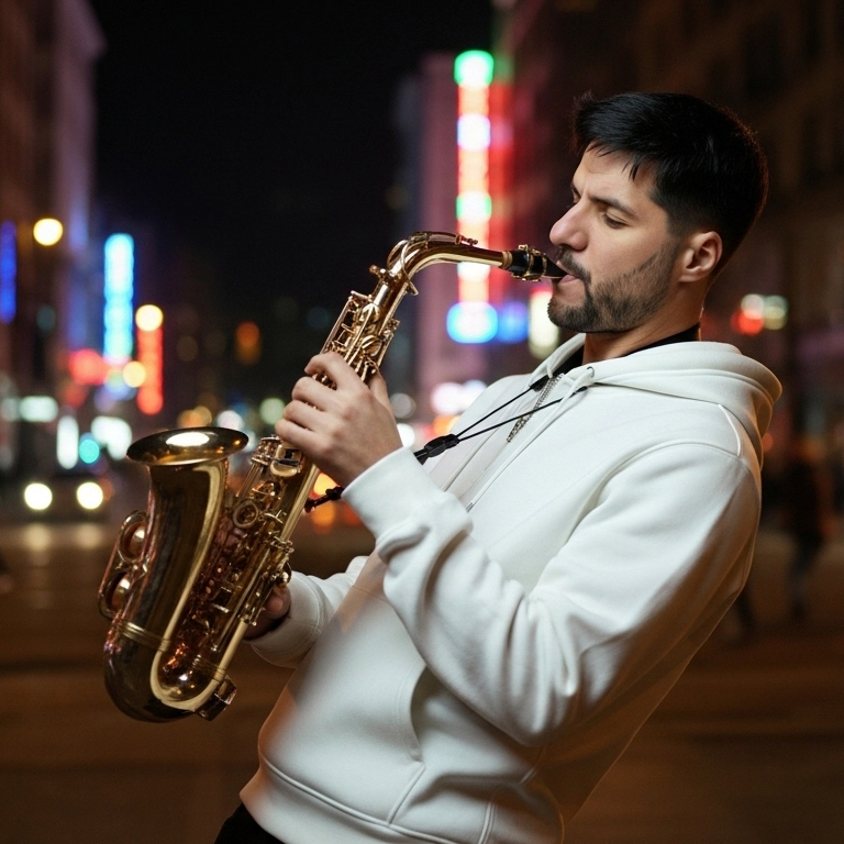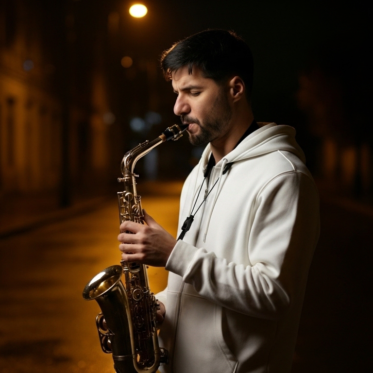 Opens with brushed drums, upright bass walking a warm groove, and crisp piano voicings, Saxophone leads with expressive solos, layering over subtle guitar comping, The bridge features a dynamic bass and piano interplay before returning to cool, spacious jazz textures