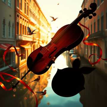 Italian Baroque concerto style of Antonio Vivaldi, virtuoso solo violin with string orchestra, rapid passages with brilliant arpeggios and scales, concerto grosso form with ritornello structure, fast-slow-fast three movement feel, programmatic elements depicting nature, energetic and rhythmic string playing, terraced dynamics, sequences and melodic patterns, harpsichord continuo, Venetian brilliance and sparkle, allegro vivace sections with cascading sixteenth notes, crisp articulation, dialogue between soloist and orchestra, celebratory and vivid atmosphere