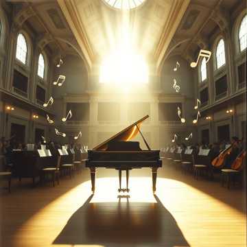 High Classical style of Mozart, piano concerto dialogue between soloist and orchestra, operatic vocal elegance, perfectly balanced phrase structure, crystalline clarity and transparency, effortless grace and melodic invention, sophisticated harmonic progressions with surprising modulations, Viennese orchestra with winds and strings in perfect blend, alternating playful and deeply expressive moments, moderate to allegro tempo with graceful ornaments, dramatic operatic contrasts, chamber music intimacy in symphonic settings, every note perfectly placed