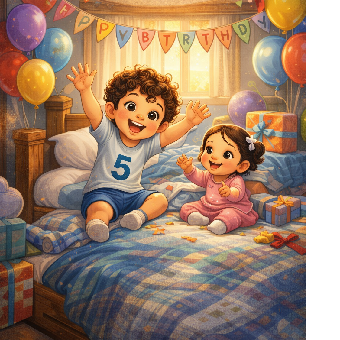 Big epic Disney-style musical, joyful and cinematic, like a modern animated movie song, Bright orchestral arrangement, sweeping strings, playful woodwinds, big drums, magical sparkle, children’s choir backing vocals in the chorus, emotional but fun, huge catchy singalong chorus, adventurous, heartwarming, celebratory, feels like a birthday adventure montage in a Disney/Pixar-style film, Starts gentle and builds to a powerful, soaring, joyful finale, ⸻