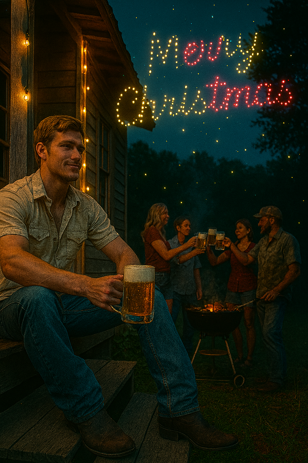 A modern country Christmas pop track kicks off with bright acoustic guitar and pedal steel, layered with lively jingle bells and crisp pop beats, Smooth, slightly raspy male vocals glide over fiddle accents, rhythmic bass, and festive electric guitars, The chorus bursts with holiday cheer, lush harmonies, and vibrant percussion