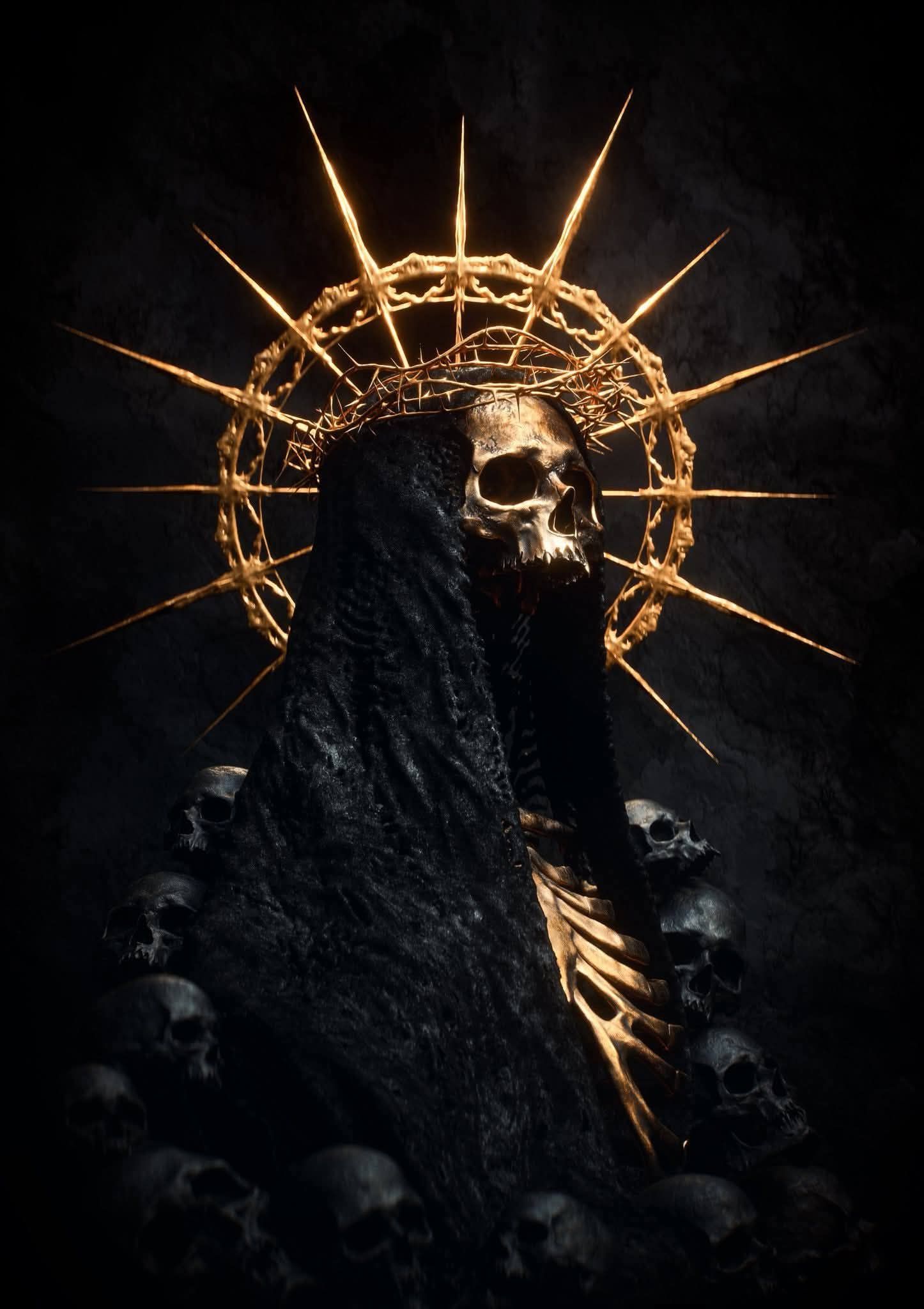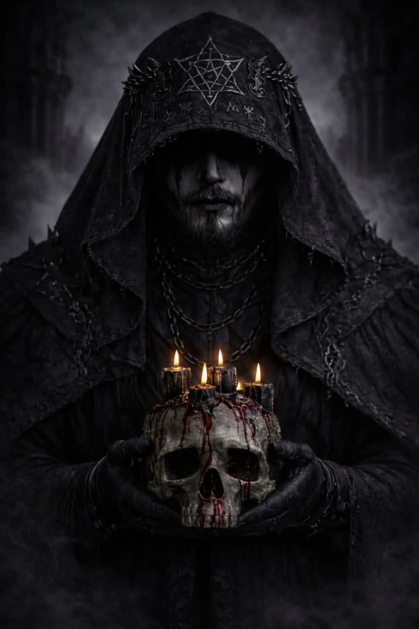Genre: Symphonic Black Metal Ritual / Extreme / Sacrilegious Tempo: mid, crushing, ritualistic Key feel: Minor, dissonant, oppressive Mood: Ancient primordial eternity Vocals: must feel inhuman, intimate, and blasphemous, Male voice sits unnaturally low; perform as subharmonic growl or octave-doubled bass with distortion and whispered doubles