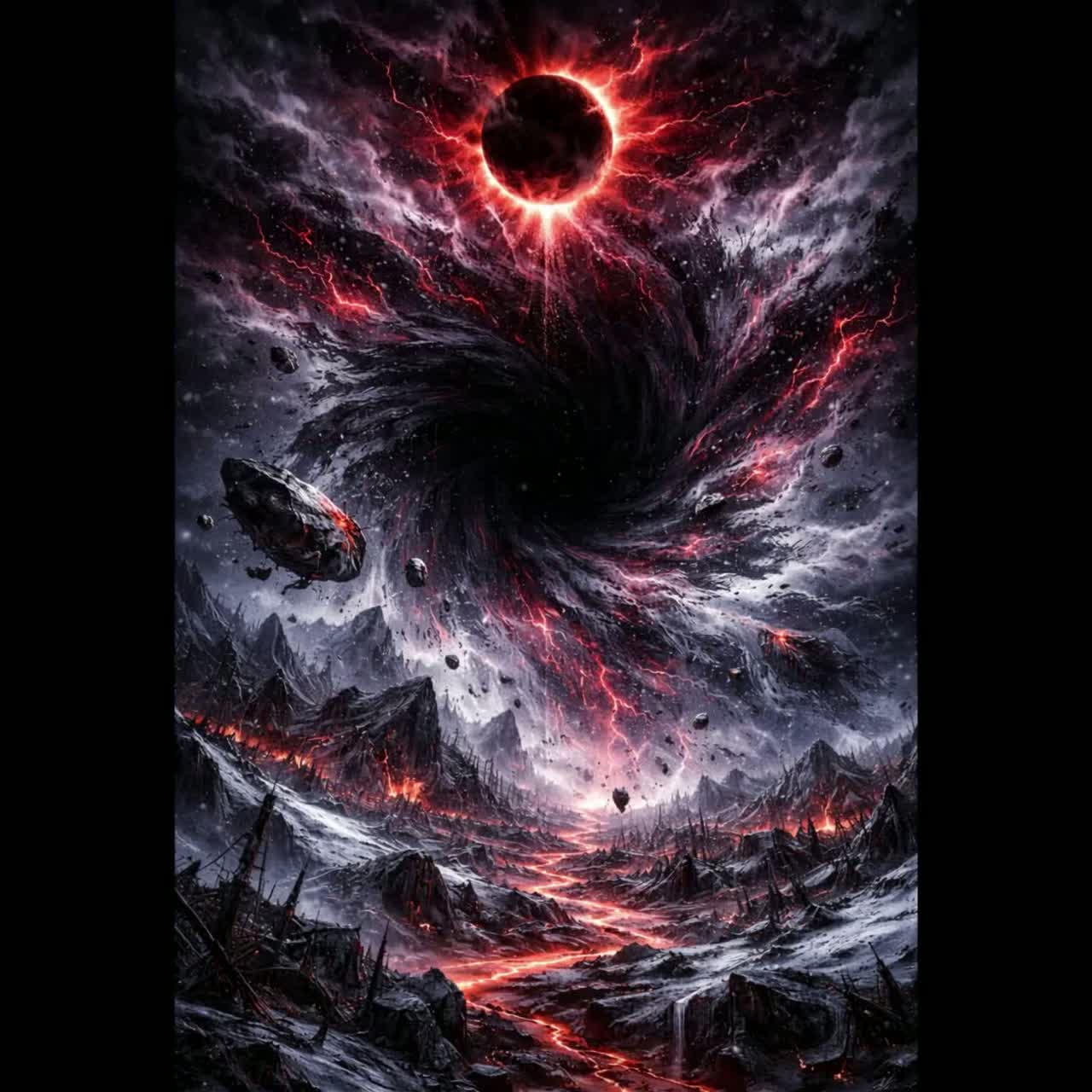 > Slow, dark, ritualistic black metal with doom metal elements, Deep growled vocals, slow tremolo-picked guitar riffs in Drop B tuning, with dissonant chords and heavy distorted power chords, Inspired by Behemothโs โO Father O Satan O Sunโ, Triptykon, and Dark Funeral, 65 BPM, grim and crushing atmosphere, Ritual drums โ slow, pounding toms and deep kick, Guitars drenched in reverb and flanger effects, minor scale riffs with slow slides and droning open strings, Include a dramatic moment with a screamed line: โOoo Dark Lord!โ โ echo it like a ritual invocation, Use the provided lyrics: โTo Curse the Fleshโ, No chorus โ pure evil flow, Add ambient background textures like wind, fire crackle, reversed chants, and distant choir, Let the final riff feel majestic, like the triumphant end of mankind