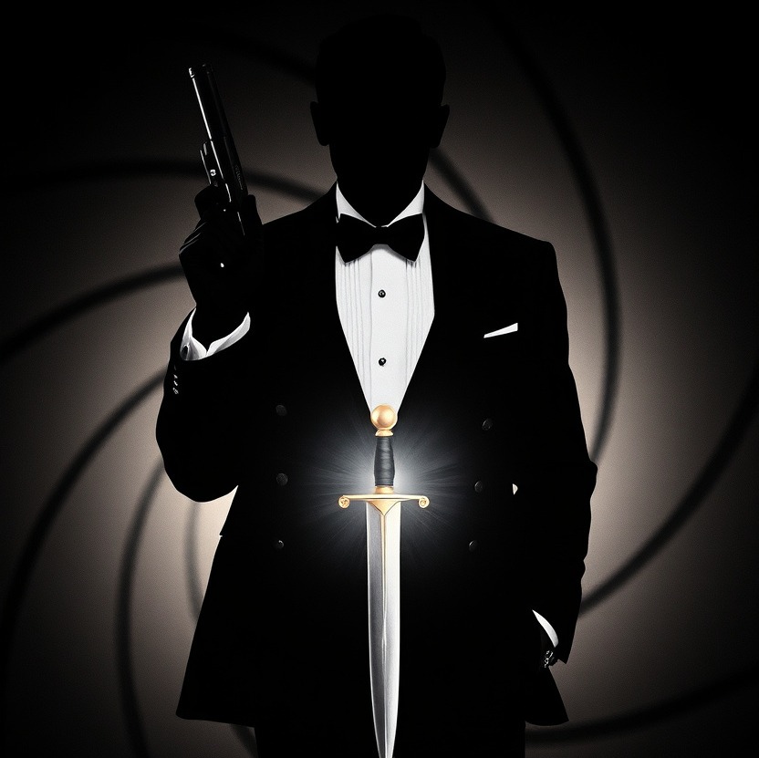 A spy thriller opening theme, dramatic blend of sweeping orchestral strings, bold brass stabs, and slinky, muted electric guitar riffs, all underpinned by a deep, pulsing bass, Sharp percussion with crisp snares and cymbal swells heightens the tension, while shimmering synth textures add a modern, noir-like atmosphere, Occasional timpani rolls and lush woodwinds accent the cinematic flair, creating a sense of danger, seduction, and espionage woven seamlessly into a grand, stylish arrangement