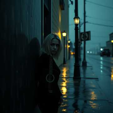 Start with a hypnotic groove: tight drums, pulsing bass, layered with retro chic velvet synths and a vintage glam guitar riff drenched in chorus, Moody Britpop vocals float over elegant melancholic chord changes, while noir-inspired string flourishes and subtle post-punk textures add dark urban sophistication, Artful production touches—delicate reverb, cinematic percussion—bring out the obsessive rhythmic drive and introspective yet stylish edge, creating an atmosphere of sophisticated, glamorous cool