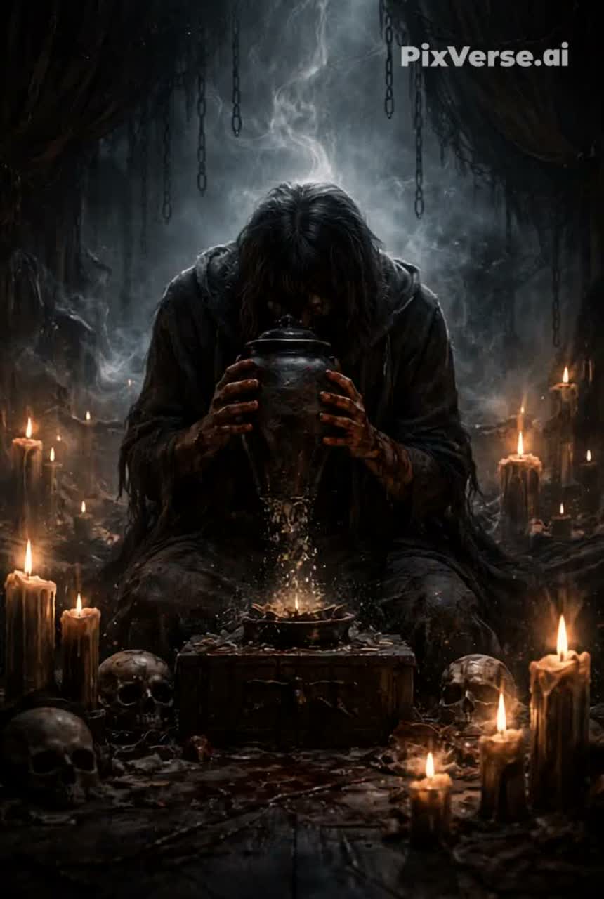 The song unfolds with dark cinematic strings, dissonant violins, and brooding low drones, accentuated by thunder, heavy rain, and howling wind, Faint sirens bleed into the mix, Background sounds—door knocks, chain rattles, metallic echoes, anxious breathing—punctuate the mood, Female vocals whisper through trembling verses, drifting with creepy echoes, then escalate into layered, raw screaming choruses using 8D and 6D effects to swirl around the listener, The arrangement builds intensity, evoking claustrophobia and psychological terror, before resolving into tense, sparse instrumentation and fading sound design, signaling survival