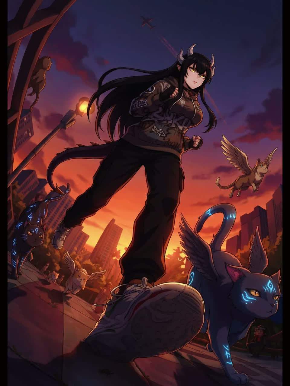Modern Japanese rock, husky and powerful female singer, vibrant, chaotic blend of supernatural thrills and youthful emotion, dark pop dynamism