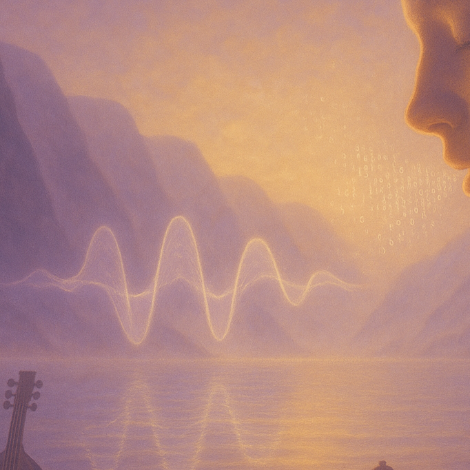 Hanseatic Math-Post-Syncopated-Experimental-Dream-Lo-fi: a generous and opulent fusion of global sounds, The foundation is a gentle, loping, motorik Krautrock groove and a warm, melodic Japanese City Pop fretless bassline, Over this, lush, Debussy-inspired synth pads from a Prophet-5 create a dreamy, unresolved harmonic bed, Melodic textures are woven from the microtonal filigree of a Turkish Oud, the bright, syncopated arpeggios of a Cuban Tres, and the resonant, pitched-down drones of a Balinese Gamelan, The production is warm, rich, and deeply reverberant, like sounds echoing across a misty fjord at dawn, The verse opens with this full, lush instrumental tapestry already in place, creating a sense of being dropped into an opulent, moving labyrinth of sound where the Oud and Tres are most prominent, The vocal delivery is a close-mic'd, sensual whisper, weaving between the instruments like another melodic texture, For the chorus, most of the intricate melodic instruments pull back, l, ‑drums, ‑guitars