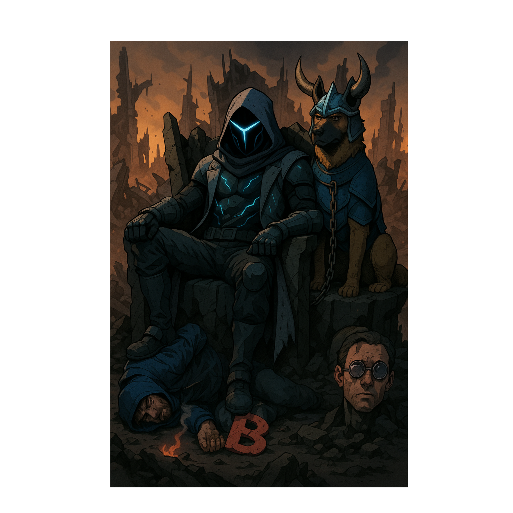 95 BPM, Dark rap-rock / nu-metal track with drop-tuned guitars, 808s, trap hats, and big rock drums, Structure: intro with ominous synth + low riff → verse with rap vocals over hip-hop beat (808, hats, snare, light guitars) → pre-chorus builds with distorted accents + risers → chorus explodes with heavy guitars, full drums, soaring melodic vocals, screams layered, Verse 2 repeats with bass stabs + guitar fills → bigger pre-chorus with shouted ad-libs → chorus 2 louder with harmonies, Bridge is half-time breakdown with crushing riffs, screamed vocals, sub drops, Final chorus massive with gang shouts, layered screams + cleans, Outro fades with feedback and last shouted line, Vibe: dark, aggressive, anthemic rap-rock arena pit energy