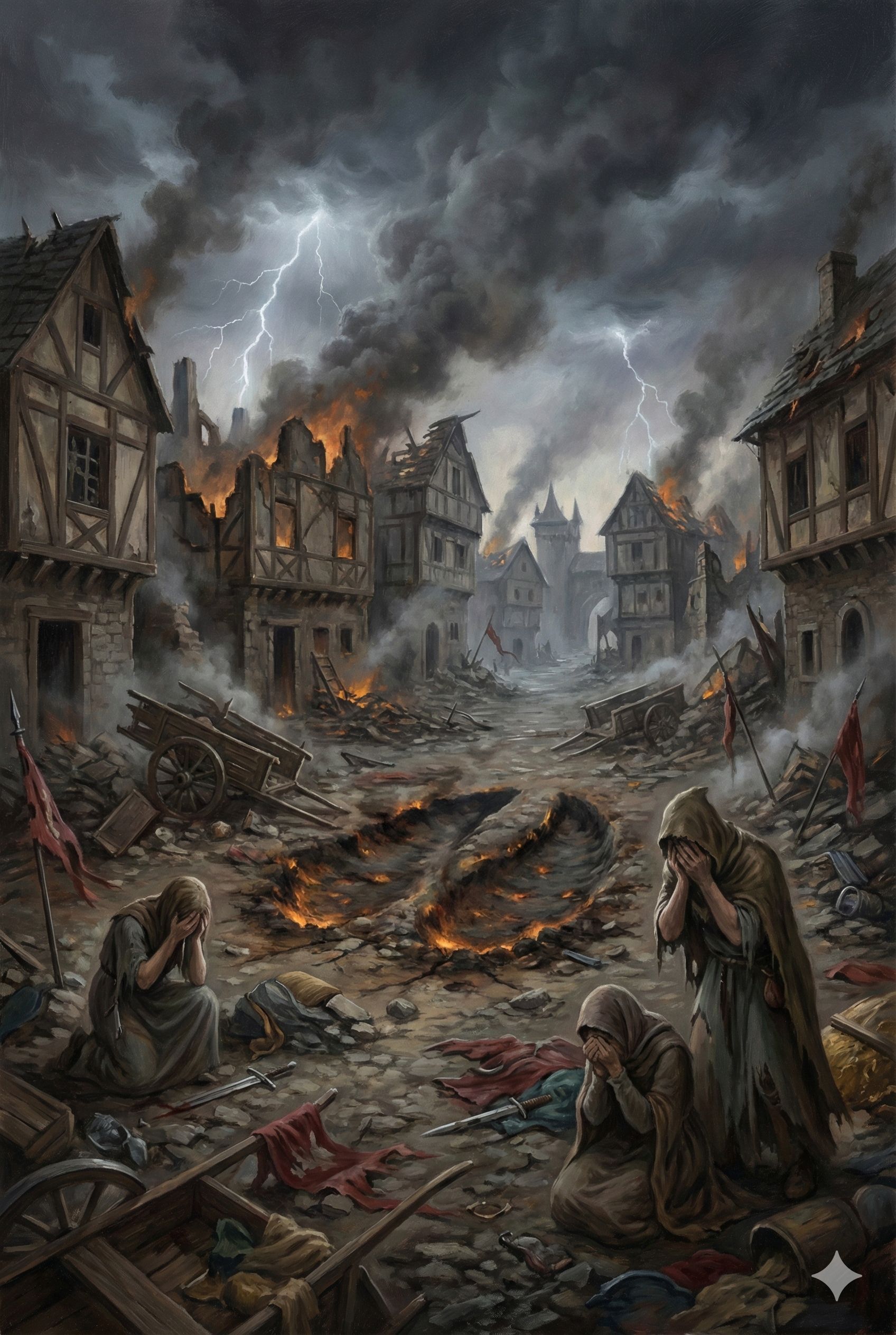Tragic Symphonic March, Mournful, [Structure: Somber intro, Dark slow-tempo movement, Focus on weeping solo violins and lamenting woodwinds, Sudden crescendos of grief, Heavy, heart-wrenching orchestral hits and muted brass, ] 75BPM, Sorrowful, Dark, Emotional, Cinematic