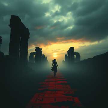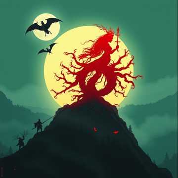A slow, heavy pagan metal march opens with distant, echoing frame drum pulses and atmospheric drone, Haunting female ancient vocals enter, weaving a curse-laden chant, Layered distorted guitars and mournful melodic lines intensify, evoking battlefield sorrow as tension gradually builds