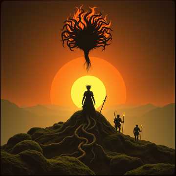 This fast Pagan heavy metal track erupts with pounding frame drums, djembe, and stomping feet for a driving tribal groove, Deep male vocals ground heavy guitar riffs, while bodhrán, wild fiddle, and swirling flute add frenetic reels, Chanting rounds heighten ritualistic intensity