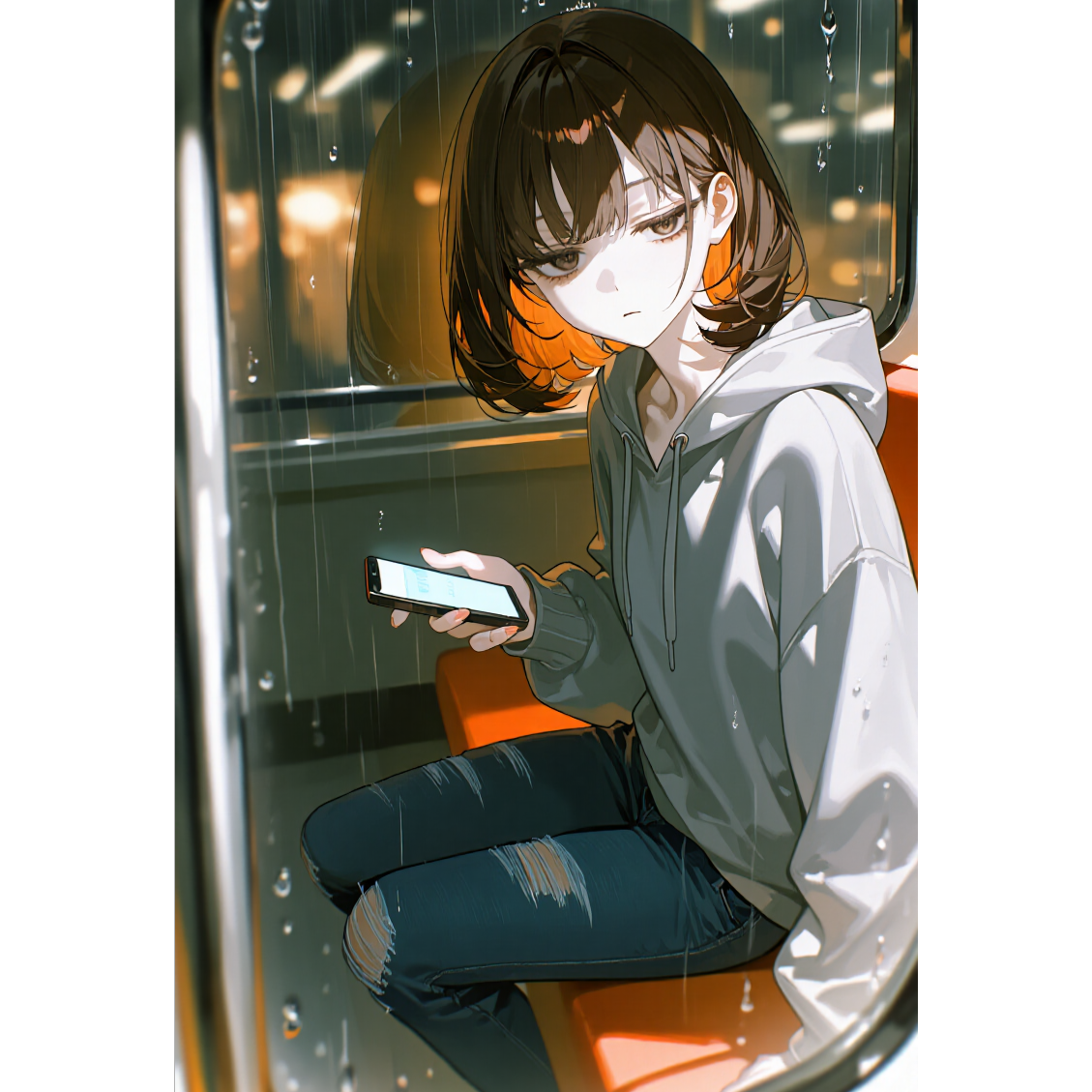 [Genre: Jazztronica, IDM, Future Jazz] [Vocals: cute female voice, ethereal, gentle, emotional] [Mood: contemplative, melancholic, nostalgic, hopeful] [Emotional arc: from anxious loneliness to peaceful self-acceptance] [Instrumentation & Sound Design: ambient synth pads, shimmering arpeggios, jazzy piano chords, downtempo drum machine beats, subtle rain sound effects, delicate bassline]