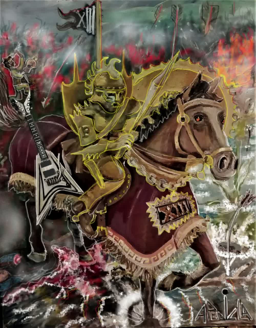 A dramatic heavy rock ‘n’ roll ballad starts with brooding clean guitar and subtle keys, Drums burst in with punchy, heavy percussion as electrifying guitar riffs emerge, The chorus swells with a powerful choir backing, layered over distorted leads and thunderous rhythm