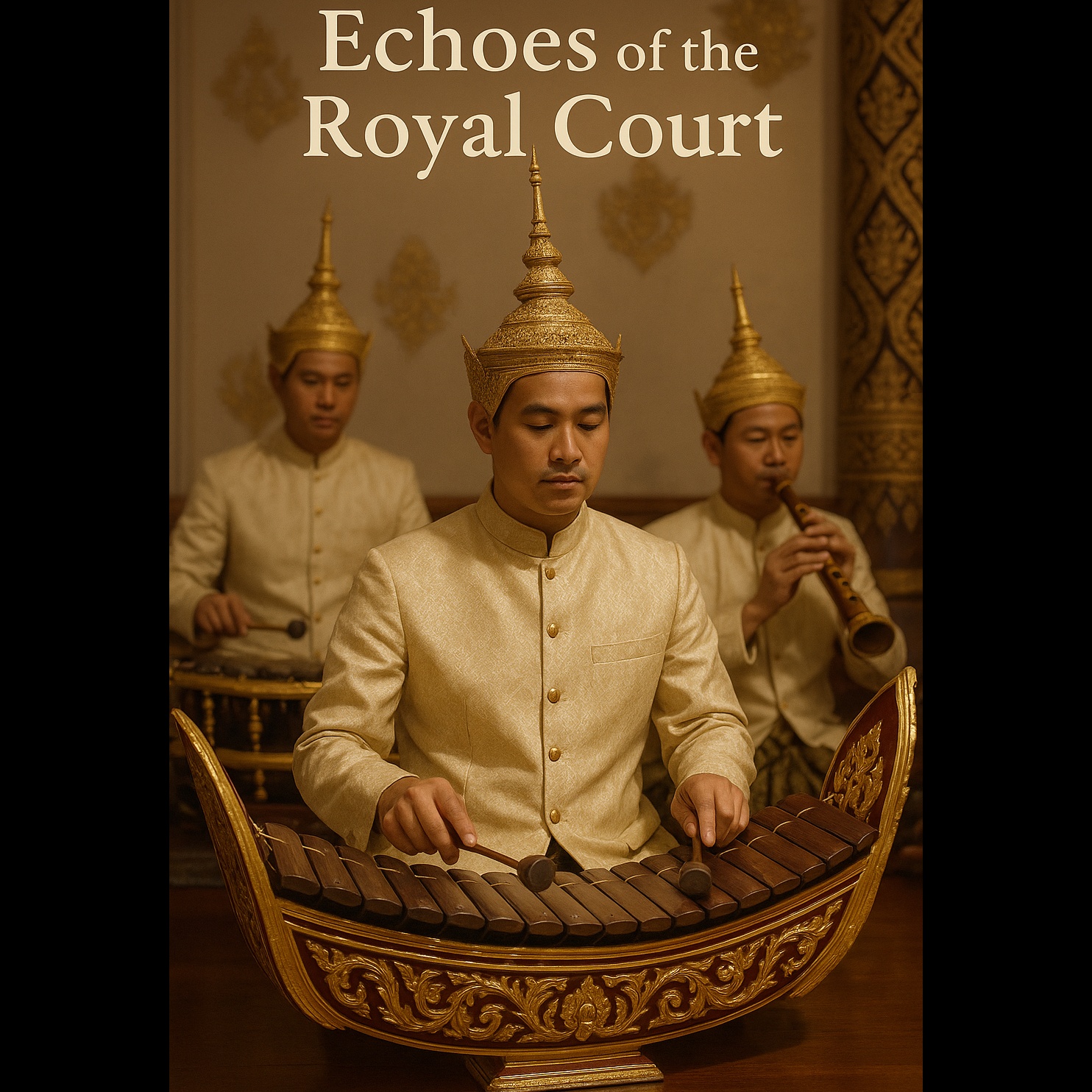 Traditional Central Thai folk music with ranat ek (bamboo xylophone), khong wong yai (gong circle), and pi nai (Thai oboe), elegant and ceremonial