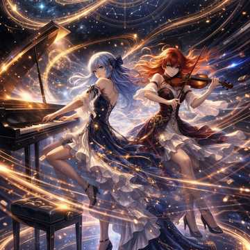 Piano and violin concerto, intense performance, Melodious, riffs, Instrumental Harmony, chaos, Cool intro