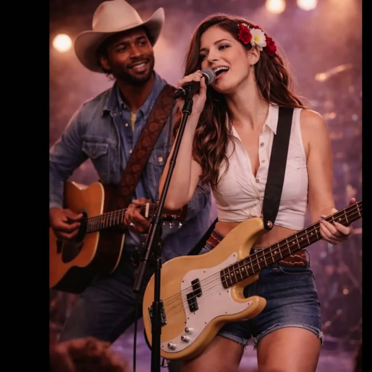 “Upbeat pop-country crossover track featuring bright acoustic guitar strumming, light banjo accents, steady kick-snare drum groove, warm electric guitar fills, and melodic bassline, Include catchy fiddle or mandolin flourishes, layered with lush vocal harmonies in the chorus, Polished, emotionally resonant production with a youthful, heartfelt tone, Blend country roots with mainstream pop energy, ideal for a coming-of-age story or a love song with small-town vibes, ”