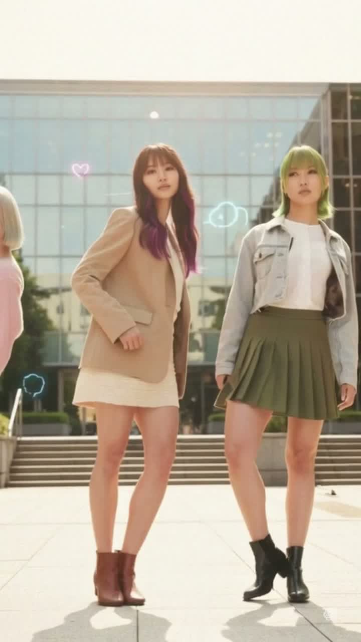 A bright, modern Future and chill K-Pop track at 130bpm, The mood is joyful, confident, and luminous, Built on an elastic synth bass, glossy electronic layers, and crisp, playful percussion, The groove feels lively yet controlled, shimmering with warmth and clarity, Features a female trio with expressive, smooth, natural mid-range vocals, Dynamic three-part harmony is essential for a strong melodic hook, The sound builds with sparkling arps and layered claps, blooming into a radiant, full-width stereo mix of multi-voice chants, tight drums, rounded bass, and glittering synth cascades, Upbeat, confident energy with an emotionally open tone, ‑rock, ‑metal, ‑trap, ‑dubstep