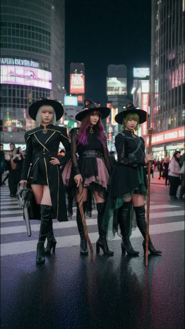A K-pop female trio track at 130bpm opens with layered atmospheric synths, subtle EDM pulses, and crystalline bells; playful whispers set a mysterious, coquettish tone, Verses glide with cute, tightly woven harmonies—airy and teasing, crisp with minimal echo—drifting through subtle modulations that evoke a dreamlike, rising tension, Vocal dynamics flow in waves, alternating between soft intimacy and powerful surges, keeping emotional contrast vivid and preventing a constant high range, The chorus bursts open in bright synths and shadowed bass, amplifying light-dark emotion and flirtatious allure, Midway, the song morphs into a hypnotic, haunted dance: claps, percussive chants, and luminous synth stabs conjure a sensual, carnival-like energy, Distinctive metallic and dry percussive hits cut through the mix—steel clinks, hollow snares, and crisp rim shots shaping a sharp rhythmic texture beneath the synth glow, Breathier ad-libs and sly vocal exchanges add an erotic playfulness, as pulsi, ‑rock metal dubstep hyperpop hardstyle orchestral