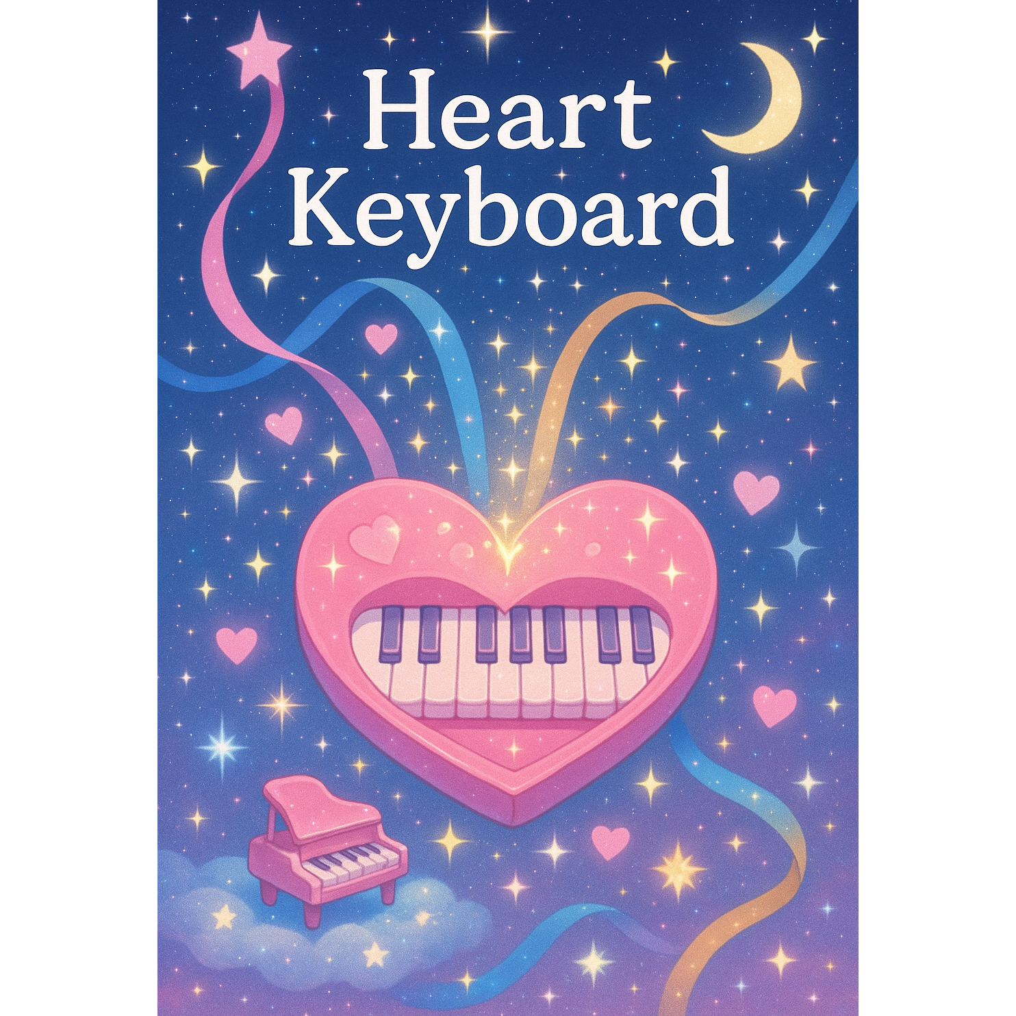 Vocals: 3-female crystal harmony in floating layers, Placement: Kay (EN) center-front lead (bell-clear, pure); Ema (JP) close-left whisper; Chan (ZH) right-side cute harmony, Instruments: toy piano, dreamy polysynths, pizzicato strings, pop bass, soft handclaps, Mix: shimmering depth, transparent highs, glassy reverb tails, gentle sidechain pulse; wide stage with a focused center, Motion: rhythmic sparkles floating in air, light bouncing softly between voices like crystals, Mood: starlit night, fluttering hearts; cute, airy, magical, Feature: 8-bar toy piano solo, playful and clearly forward; final chorus with stacked harmonies and octave doubles, Guidance: Sing the provided lyrics exactly; keep EN/JP/ZH (ZH in pinyin); no ad-libs, Structure: Intro → Verse → Pre-Chorus → Chorus → Verse → Interlude → Bridge → Final Chorus → Outro