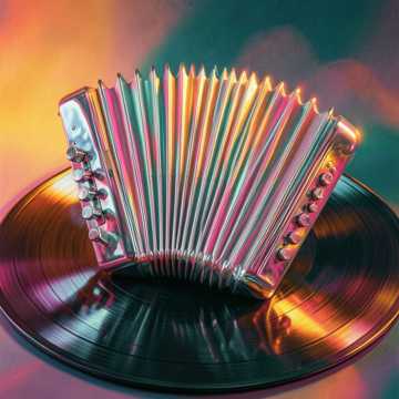 Bright synth-cumbia at 98 BPM with güira, tambora, and syncopated güiro locked to a tight dance pulse, Accordion motifs voiced on portamento monosynth leads, electric bass tumbao, crisp drum machine kicks, tropical organ stabs, slapback delay, and warm tape saturation for a vivid, punchy retro-futurist texture