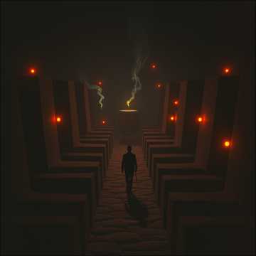 A dark acoustic guitar drives the song with resonant, moody fingerpicking, Deep, expressive vocals anchor the verses, delivering intensity, Subtle choir harmonies emerge in the background during key moments, adding atmospheric depth and a haunting undertone, all set in a sparse arrangement