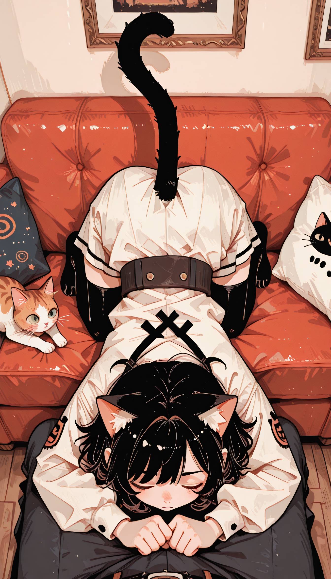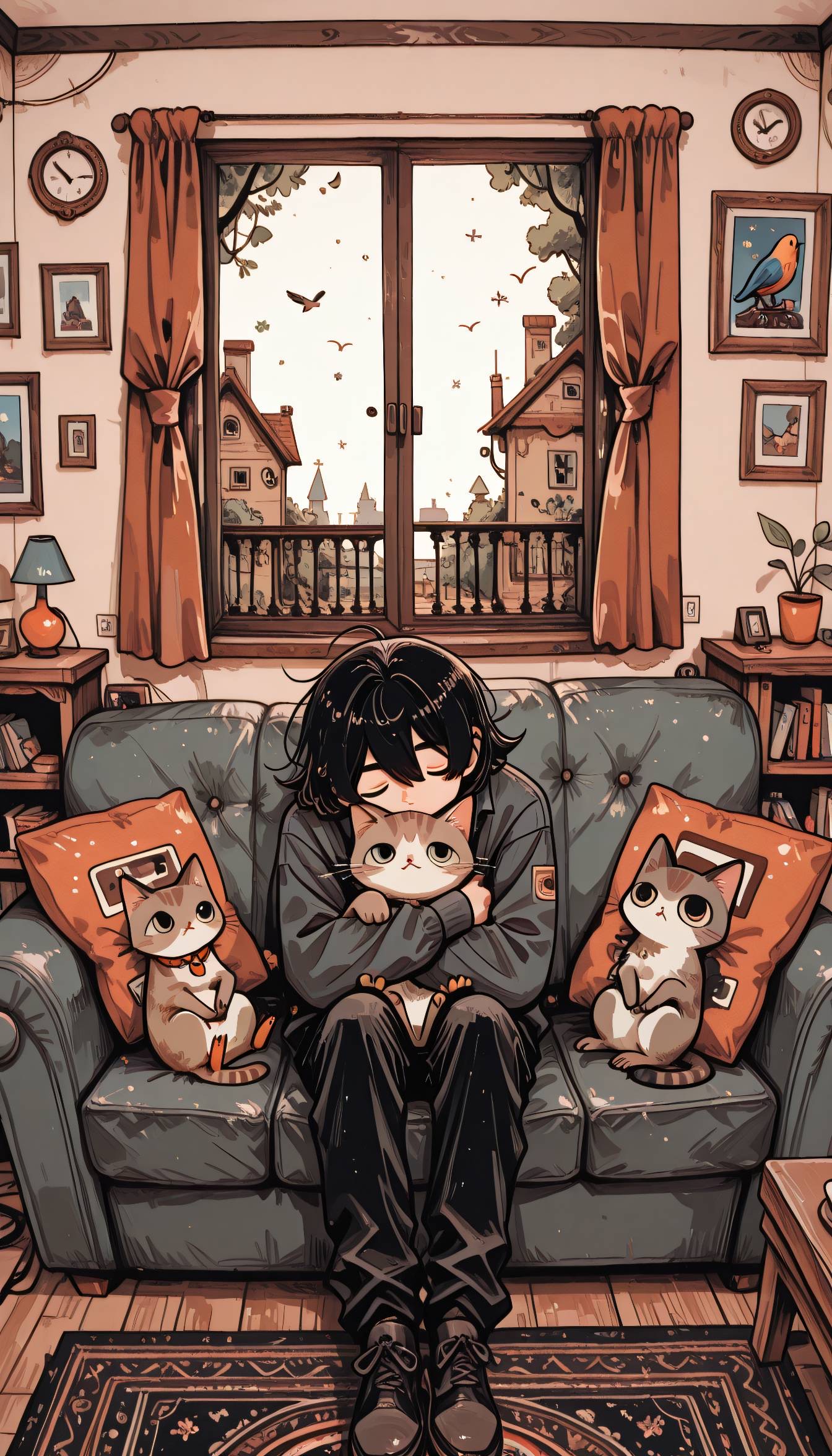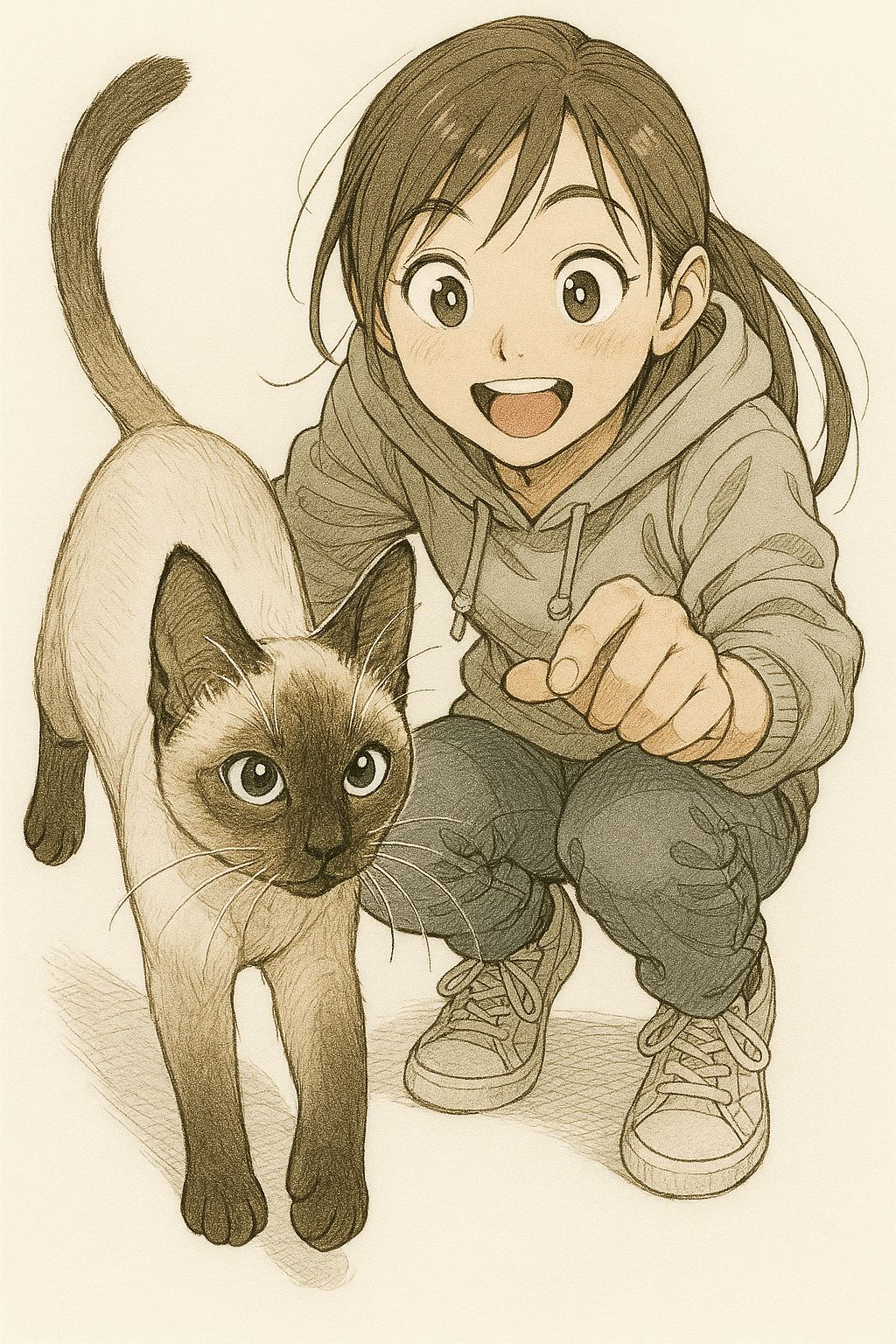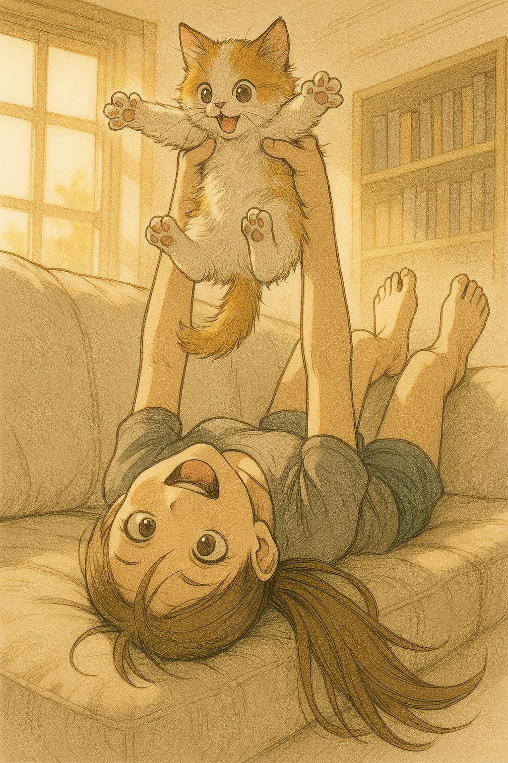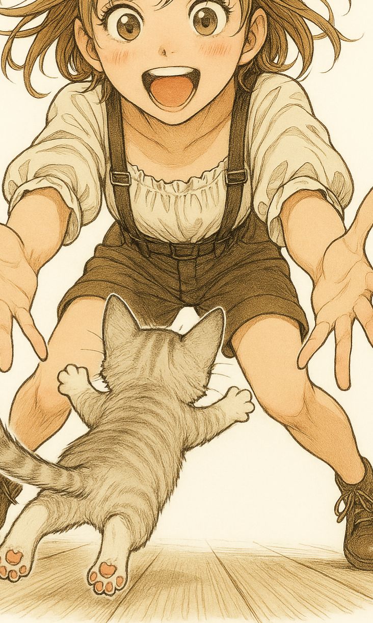 (mood: playful, mysterious, affectionate, like watching a cat move through a quiet house)