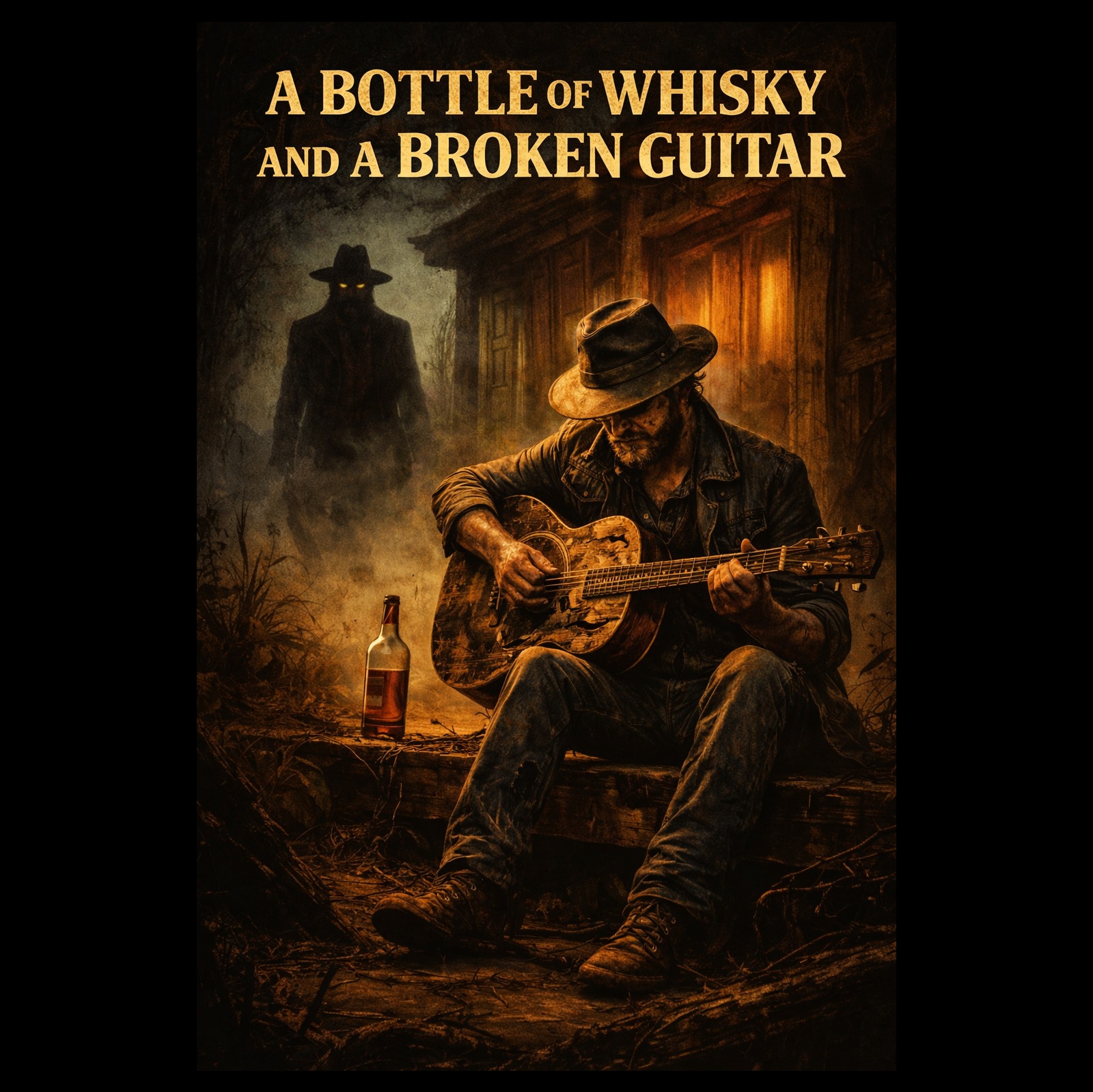 Live Swampy delta-blues foundation evolving into the heaviest blues rock of the EP, Slow, deliberate shuffle with cinematic weight, Dry, close-mic baritone vocals carry authority and finality, Verses remain stripped with resonator and stomp; choruses explode with overdriven slide, thick bass, and aggressive gang shouts, Bridge uses organ and tambourine for a ritualistic, apocalyptic tone, Emotional arc: confrontation → dominance → release